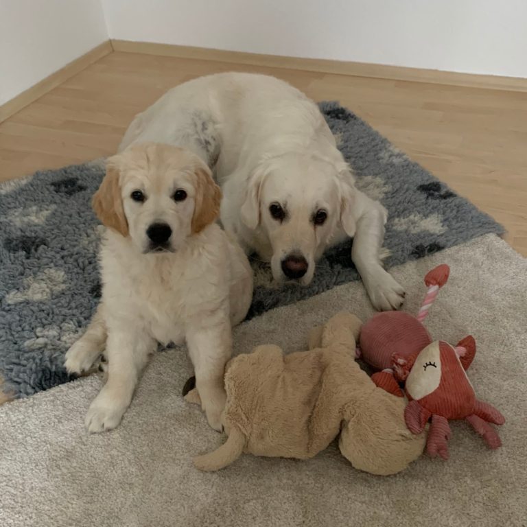 Mit sechs Wochen sind wir richtige „Halbstarke“ und testen schon mal lautstark die Rangfolge in unserem Dreamteam. Wir haben nur Quatsch im Kopf, lieben das Leben und unser Spielzeug.