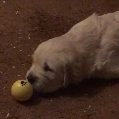 Mutiger Arlo... und schon ist er über die Türöffnung rausgeplumpst, nun gibt es kein Halten mehr. So viele interessante Spielsachen können wir entdecken, aber zum Trinken und Kuscheln treffen wir uns alle am liebsten in der Wurfkiste.